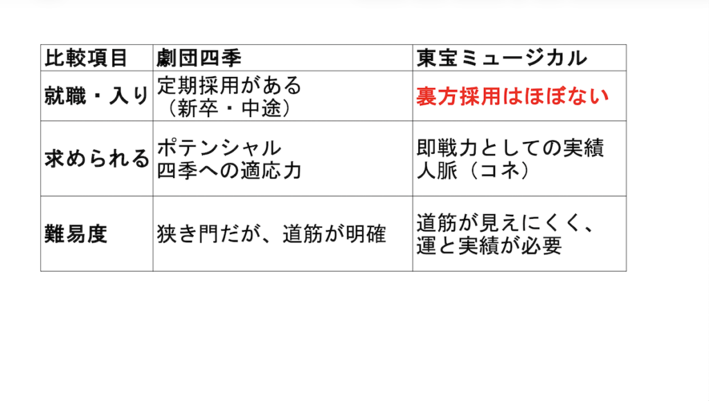 劇団四季の方が簡単なのか?というとそれも違います。